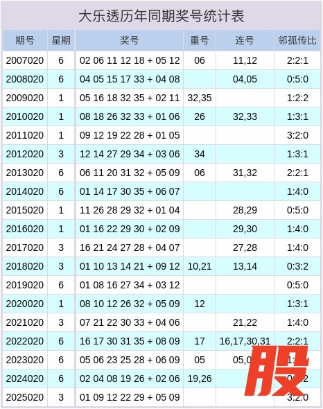 大乐透历史同期奖号数据表
